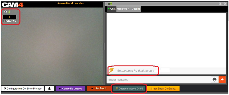 - Aquí es donde aparecerán las solicitudes de Shows Privados, en el centro de la pantalla.
