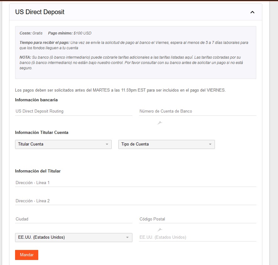 Se requiere un IBAN para retiradas por transferencia. Las transferencias a tarjetas de crédito/débito externas solo requieren el número e información de la tarjeta.