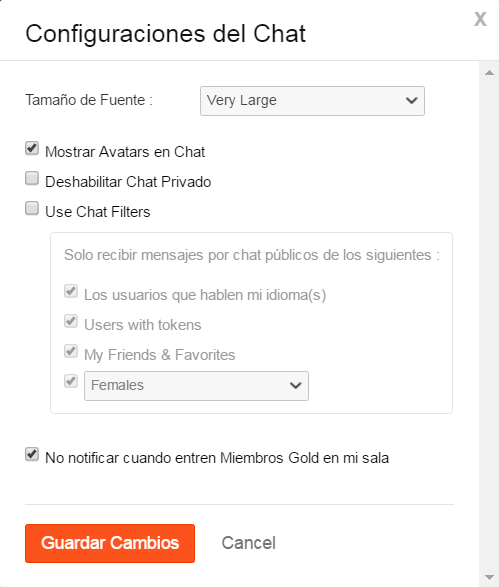 Solo amigos y seguidores – (Reemplaza “Amigos y Favoritos”) Solo los amigos y usuarios que te siguen pueden chatear en tu sala.