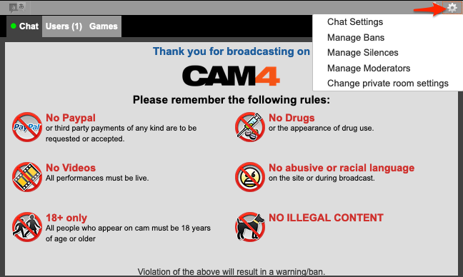 Desactivar el chat para otros broadcasters – Evita que otros broadcasters escriban en tu sala.