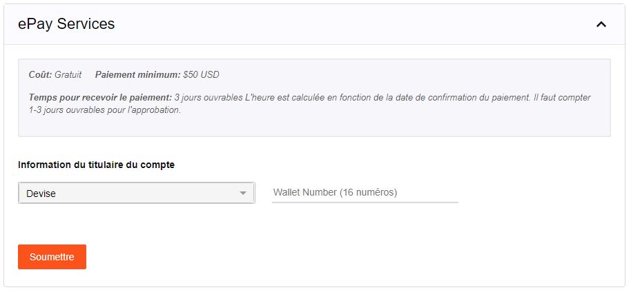 - Une liste des frais peut être trouvée à https://epayservices.com/fr/fees.html