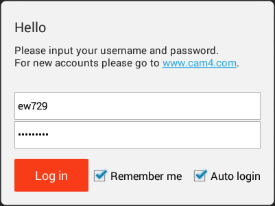 - Dans l’écran de connexion, entrez le nom d’utilisateur et mot de passe de votre compte CAM4.