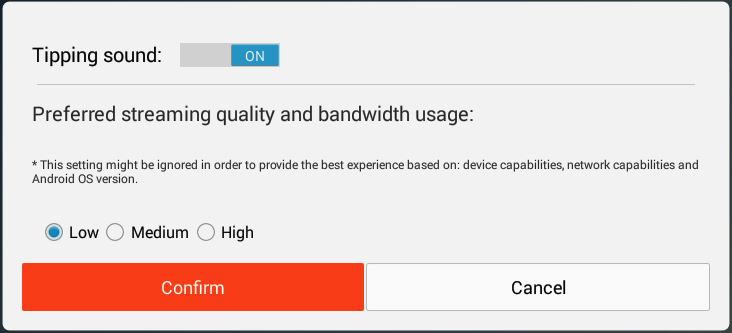 - Définissez la qualité et la bande passante dans Settings. Si vous n’avez pas une bonne connexion, selectionnez Low.