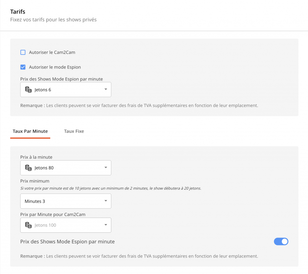 C’est la seule zone sur CAM4 où vous définissez un prix en dollars, c’est pourquoi nous indiquons clairement les signes $ et les étiquettes dans tout le processus de configuration.