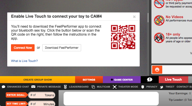 Live Touch est un nouveau moderémunération beaucoup plus chaud et interactif que le mode de rémunération classique. Avec Live Touch, vous pouvez maintenant connecter vos sextoys en bluetooth directement à CAM4 tout en diffusant!