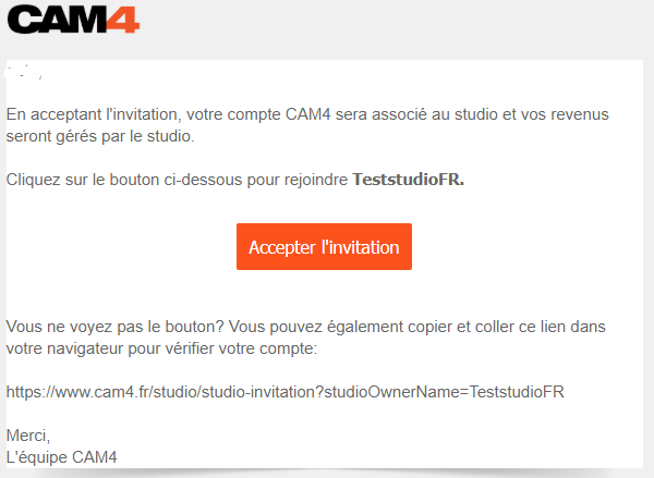 Votre modèle recevra une invitation dans sa boite mail ainsi qu’une note de l’invitation dans sa boîte de réception CAM4.