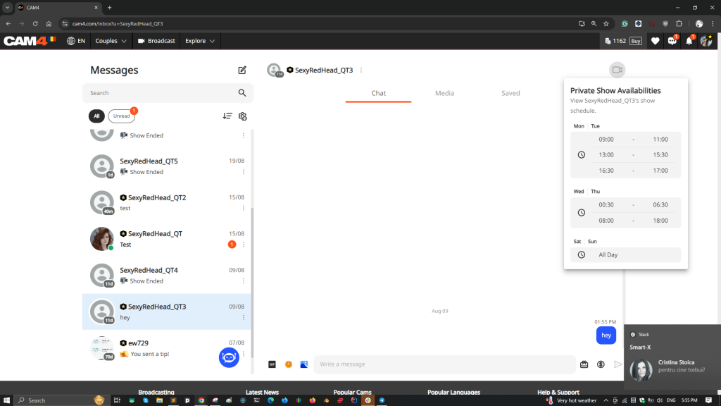 Beschikbaarheid: Het configureren van je Beschikbaarheid voor Privateshows stelt je in staat om je tijd effectief te beheren, zodat OPS-aanvragen aansluiten bij je schema. Het weergeven van deze beschikbaarheid op je profiel en in het Messenger-gebied zorgt voor duidelijke communicatie met je kijkers, zodat ze precies weten wanneer je beschikbaar bent voor privé-interacties.