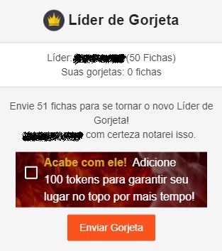 - Teasers sobre os níveis de gorjetas disponíveis
