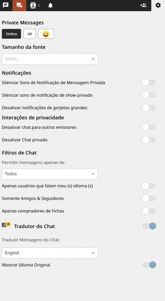 Como você pode ver, a configuração de sua extensão é dividida em 3 partes: RULES (seus níveis de vibrações), VIDEO FEEDBACK (feedback de vídeo), CHATROOM NOTIFICATION (seus bots de notificação da sala de Chat)