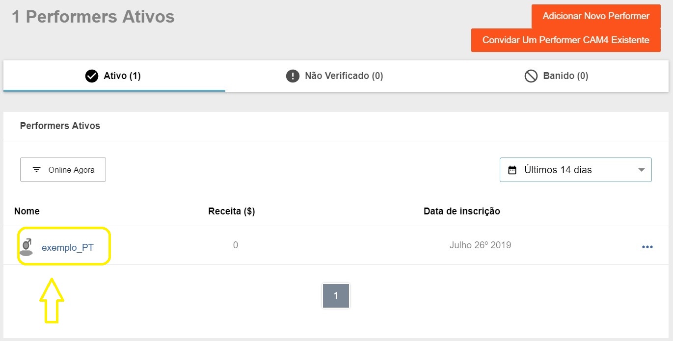 Clique no botão laranja: Convidar um Performer CAM4 Existente