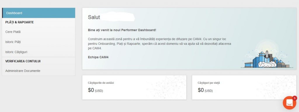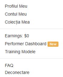 Logati-va in contul dumneavoastra CAM4.com. Dati click pe rotita din coltul din dreapta sus al ecranului si apoi dati click pe „Performer Dashboard”.