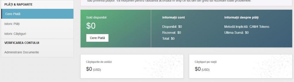 Prentru a cere o plata, dati click pe „Cere Plata” si apoi veti vedea pagina urmatoare: